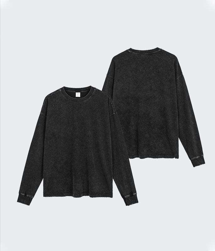 ビンテージ感のあるオーバーサイズシルエットの長袖Tシャツ。無地でどんなファッションとも合わせやすいのが特徴です。