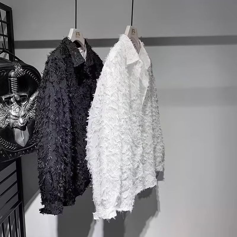 高級感のあるフリンジ加工が特徴的なシャツ。大人らしい雰囲気で高見えするブラックと、明るい印象を持たせるホワイトの2色展開!