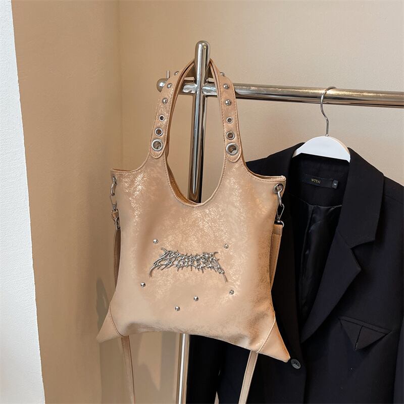 サブカル系や地雷系にぴったりなシルバーの文字やスタッズが施されたバッグ!ショルダーバッグとして斜めがけも、トートバッグとしても使えます。