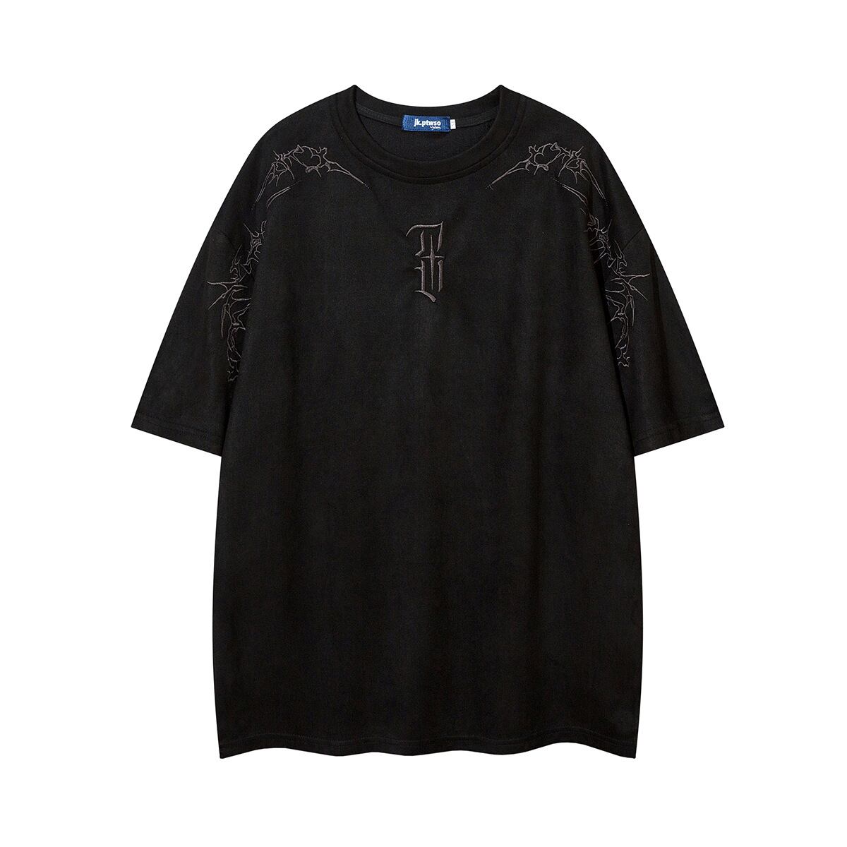 刺繍の柄がかっこよく、さりげなく周りとの違いを作れるTシャツ。大人な雰囲気を感じさせるダークブラウンなどの4色展開!