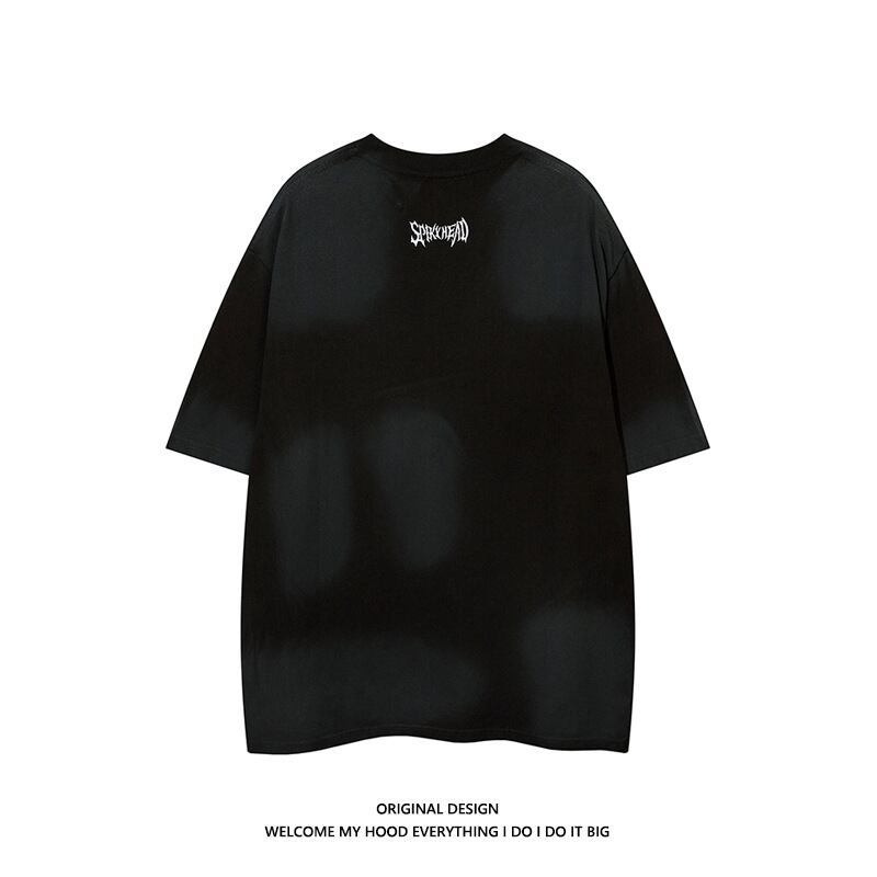 トレンドの汚れ加工が施された加工感満載のTシャツ。どんなパンツと合わせても様になるおすすめの1着です。