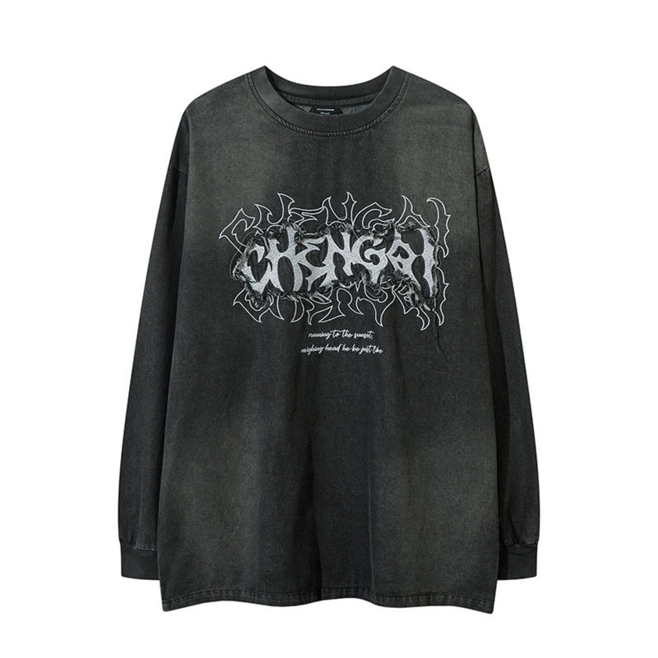 トレンドの汚れ加工が施されたロングTシャツ。寒くなってくる秋の季節にぴったり!シンプルで使いやすいブラックと落ち着くのある青みがかった色のブルーの2色展開!