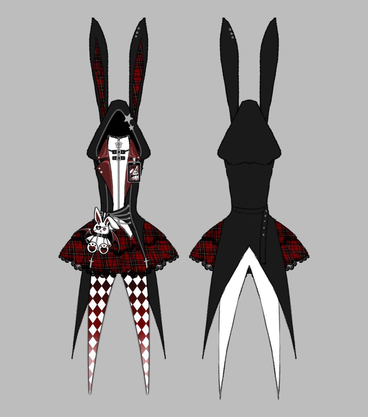平成パンク感満載!大きいうさ耳と赤いチェック柄が可愛い3点セットのセットアップ!