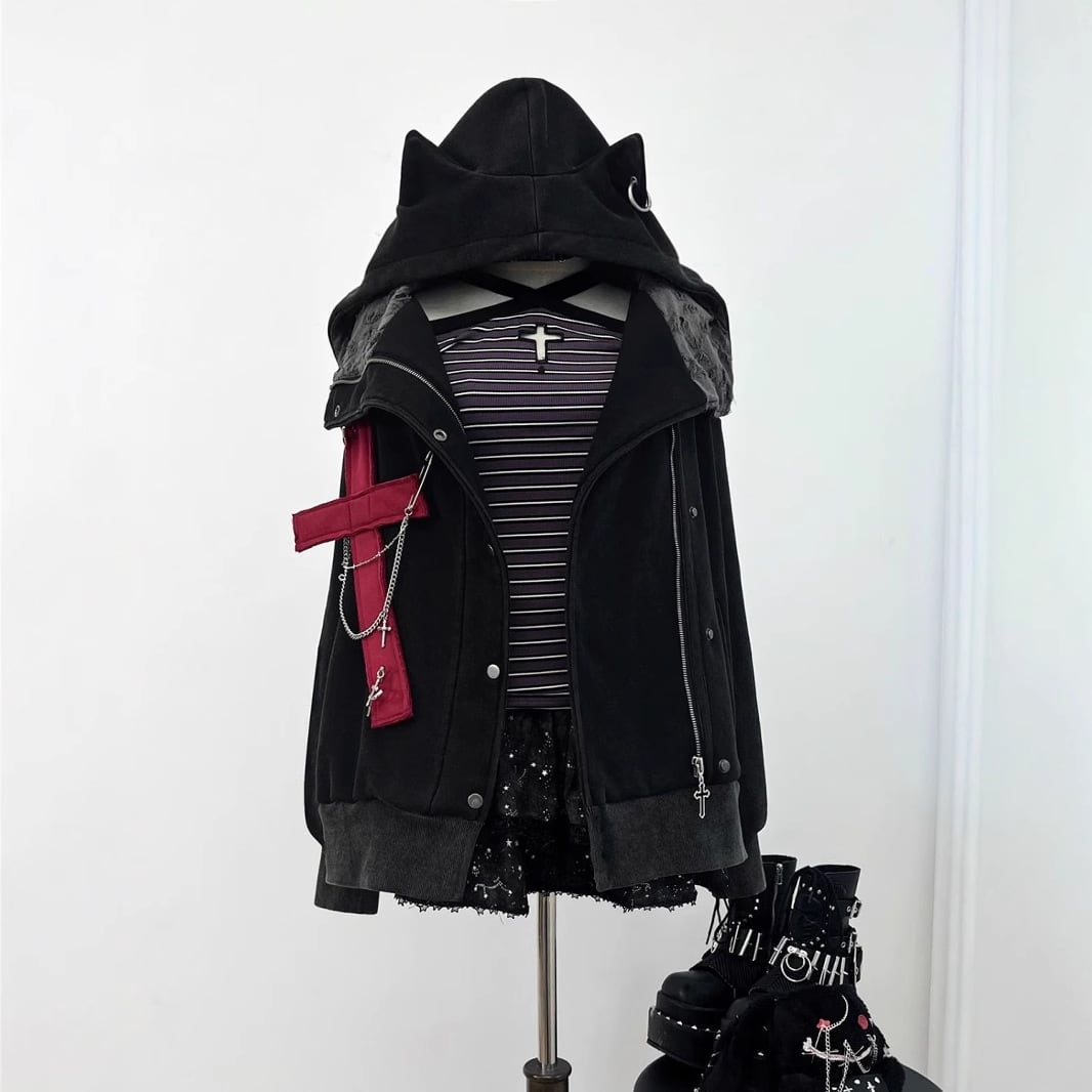 サブカル系が好きなひとは好きに違いない!猫耳がついたパーカー!インナーもついてきてこのコスパは最強!