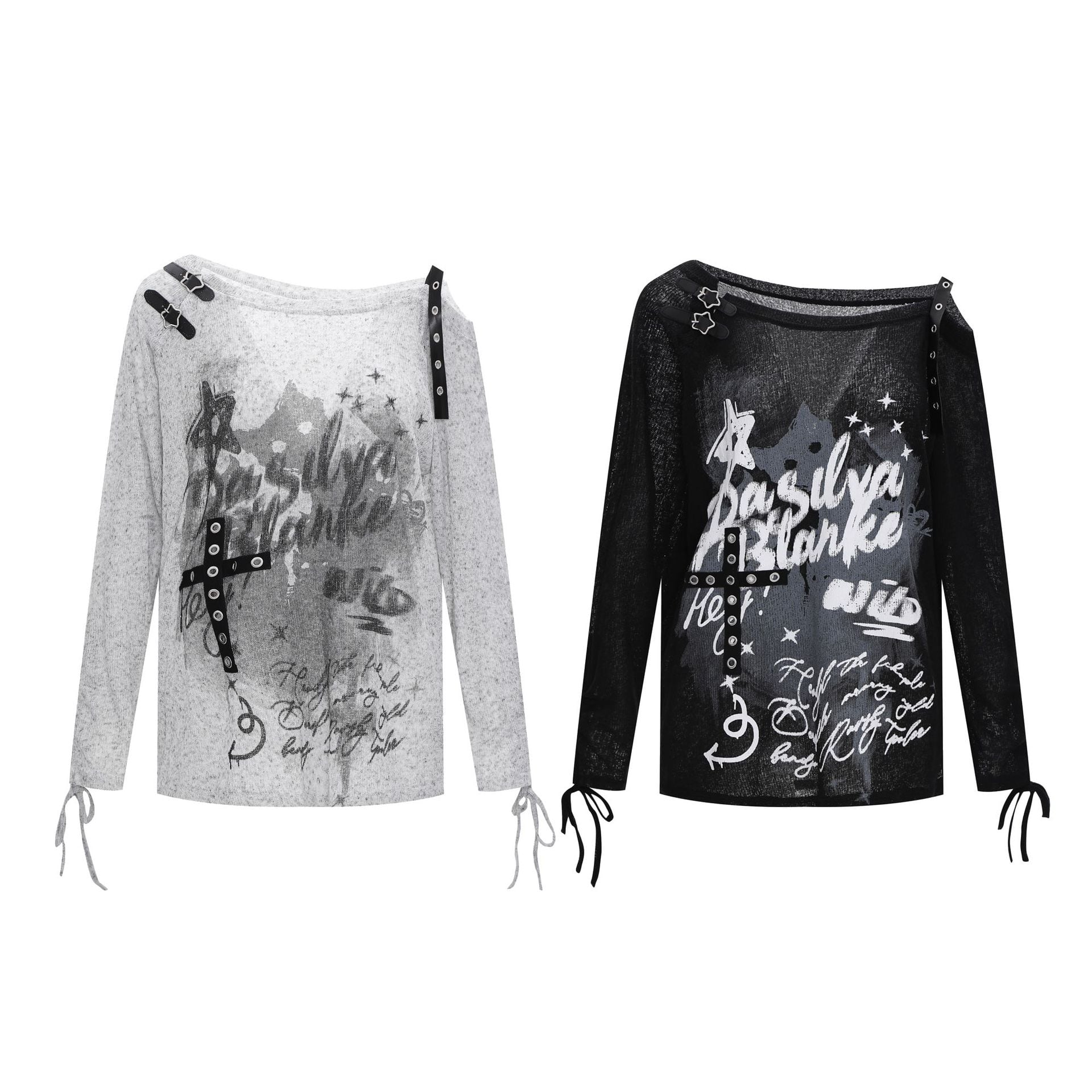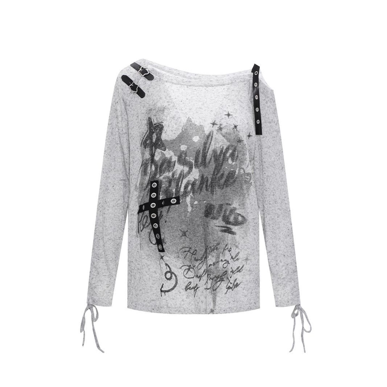 パンク系感満載なロングシャツ!肩のベルトの装飾が可愛い!